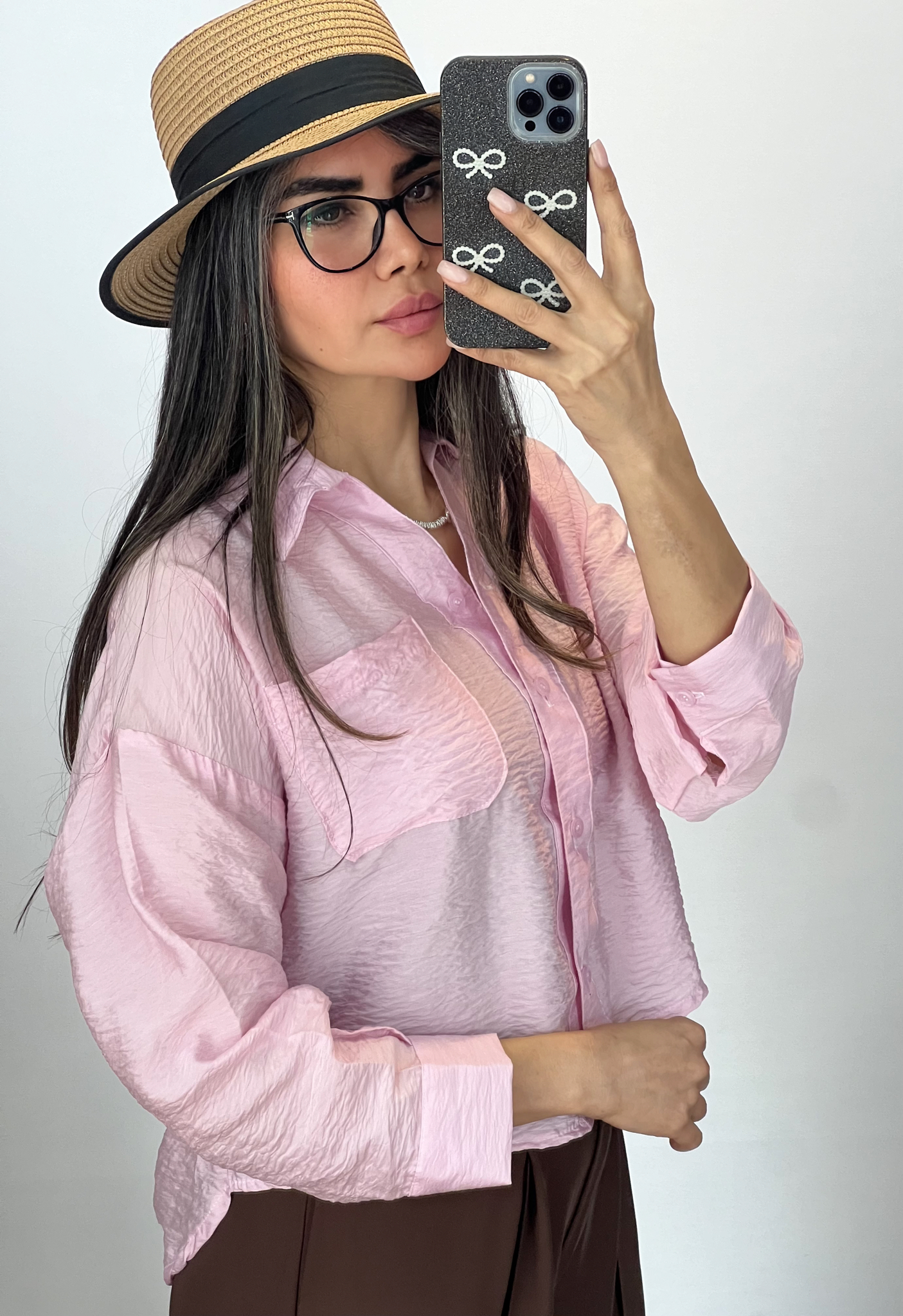 شومیز کراپ آستین پاکتی