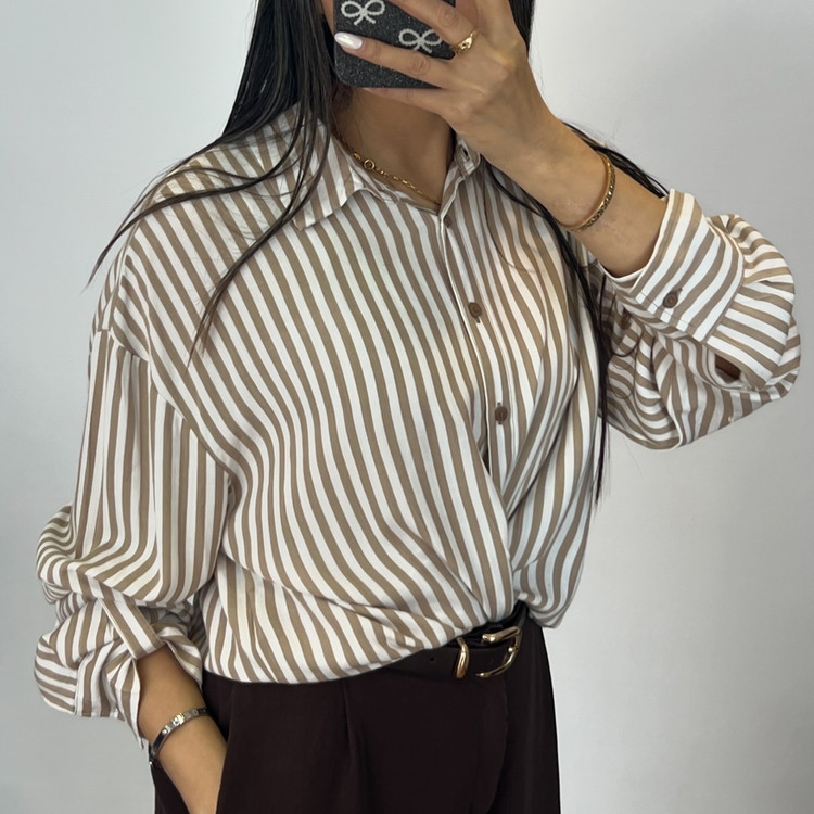 شومیز وارداتی منگو جنس پارچه 100% لینن با ریزش وایستایی فوق العاده عالی ترکیب رنگ کرم+ نسکافه ای اصلا آبرفت نداره موقع شستشو،تغییر رنگ نمیده،برای شستن پارچه های لینن لطفا از شوینده ملایم استفاده کنید ،دمای اب مناسب باشه تایم شستشو یک ربع